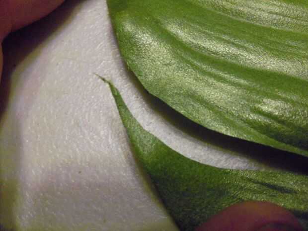 Para la primera hoja solo ligeramente envolver alrededor de la parte superior, porque esta hoja no es "totalmente formada" aún así no abanico todavía.