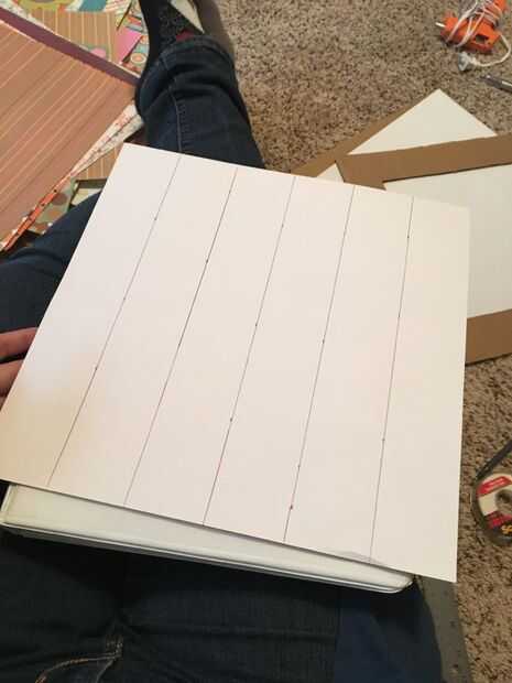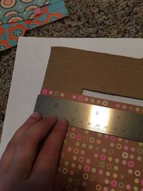 Los pedazos de papel que va a utilizar tendrá que tener un ancho del mismo tamaño que su frontera. Usando la regla y el utensilio de escritura, mida y trace líneas rectas en intervalos de 2" en la parte posterior de la primera pieza de papel de scrapbook para que sus líneas no son visibles en la cara impresa.