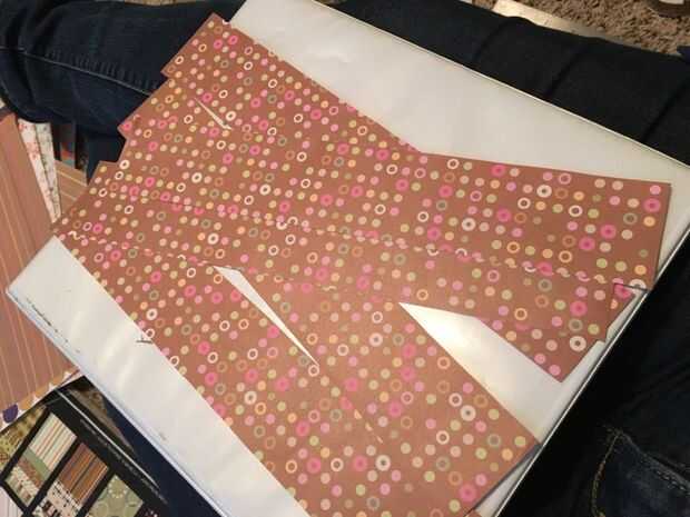 Utilice las tijeras para cortar cuidadosamente a lo largo de estas líneas. Si utiliza 12 "x 12" papel de scrapbook, como yo lo hice, usted acabará con seis tiras largas. Corte estas tiras por la mitad para que tengas 12 trozos de papel de scrapbook que son 2 "x 6".