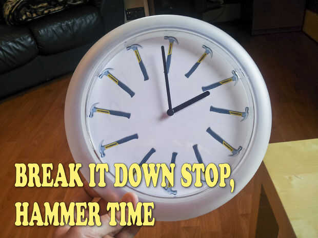 En mi casa, siempre es tiempo de martillo! Clockface con martillos en lugar de horas.