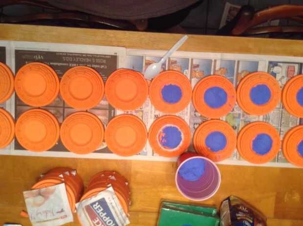 Querrá poner las arcillas en un lugar fácilmente accesible, que pagó la mina hacia fuera en dos filas de 8 con algunos en el extremo (en la foto, algunos están ya llenos)