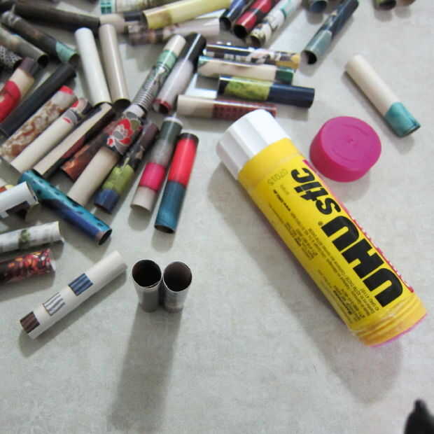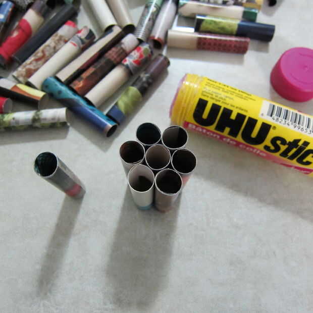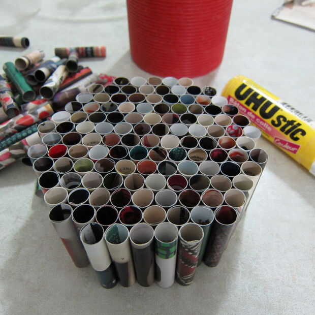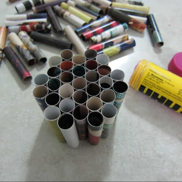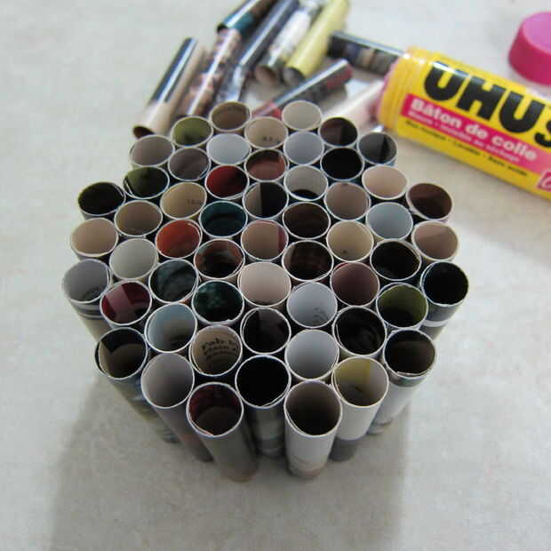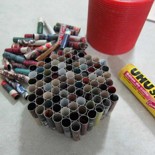 Una vez que tengas todos los rollos pegados puede empezar a armar su sostenedor de vela. Elegir una forma que usted quiere hacer y otra vez con su palillo del pegamento empezar a pegar los laterales de los rollos. Seguir pegando hasta tener la forma y el tamaño que desee.