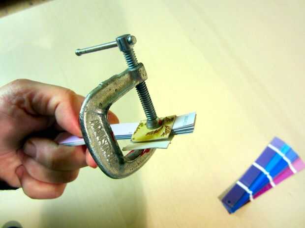 Una vez sujeta, perfore un pequeño agujero a través como se ilustra en las fotos.