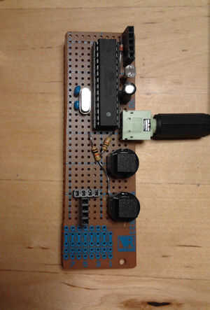 Añadir el ATmega328 y soldar los cables necesarios para GND y el voltaje. (Puede Agregar un resonador).