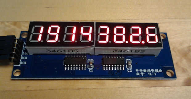 Esta pantalla se comunica con 3 cables (más tensión y GND) con el arduino. He utilizado la estructura habitual de POV, con la interrupción de temporizador que aporta cada número pantalla muy rápido fingiendo haber escrito a todas las pantallas. (Ver código).