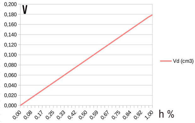 Mediante la variación de la profundidad h, 0 < = h < = 100%, podríamos calcular el volumen expulsado. Es complejo encontrar la solución exacta, prefiero inmediatamente exponga la relación ya establecida y perder la deducción de las fórmulas teóricas.