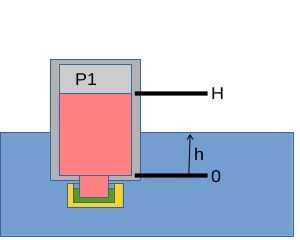 En cada ciclo de nuestro dispositivo expulsa 0.18 cm3 de desinfectante cuando el nivel del agua a la profundidad H (que coincide con el nivel de desinfectante, 100%), OK.