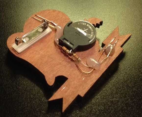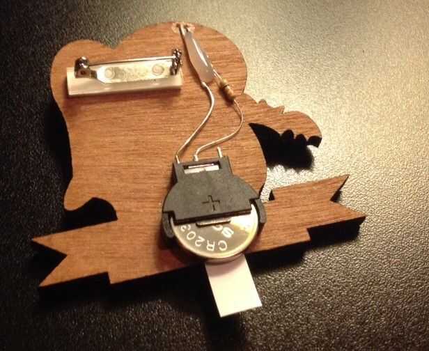 Nota: la segunda foto de arriba muestra una tarjeta con dos LED instalado; uno en la parte superior y uno en la parte inferior para iluminar el nombre. En este caso, dos resistencias son necesarios, uno para cada LED. Cada resistencia se conecta al terminal positivo de la batería y va al plomo largo (ánodo) del LED. Esto crea un efecto de parpadeo muy fría.