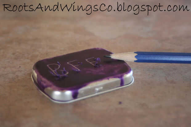 Tomar el lápiz y dibujar un diseño en la capa de tiza. Quieres ir todo el camino a través de la cera a la lata. Esto es muy fácil de hacer. Pero también no intenta dibujar sobre la bandeja, tampoco. Cuando se dibujan en la lata, va a quitar la cera. El cuadro demuestra cómo la cera puede acurrucarse en zarcillos y mantenerse conectado. Asegúrese de cepille esta cera o puede estropear su diseño cubriendo parte de la parte que usted dibujó.