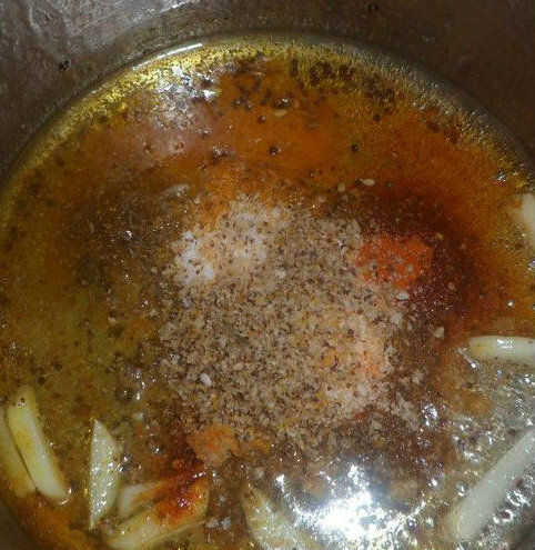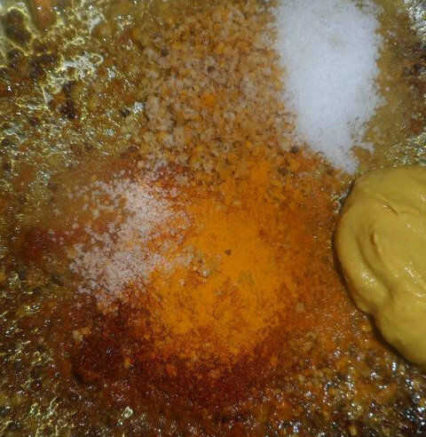 Temple-añadir especias incluyendo el jugo de limón en polvo-mezcla-apretón de sésamo.