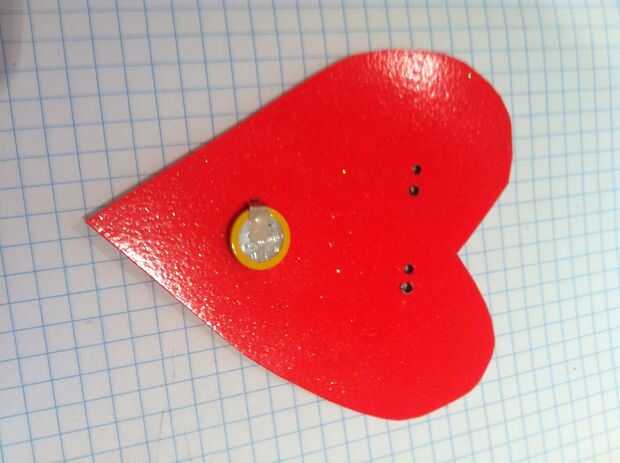 Coloque los componentes, batería de la boca--y LED para la nariz en los espacios apropiados. Cortar la cartulina donde están las patas de los LED y batería. Para los ojos, usted cortará dos 3/4 líneas donde poner los interruptores de la cartulina. Utilice su cuchillo y lápiz para hacer dos agujeros para cada uno de los ojos. Estos agujeros se llenará con pintura conductora y tendrán un espacio que se encenderá por los párpados de cierre.