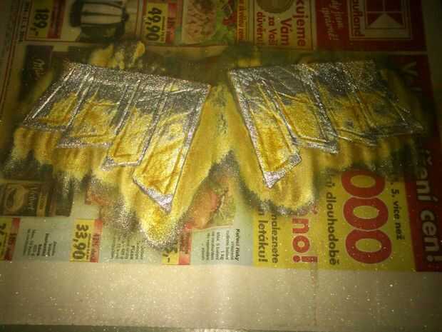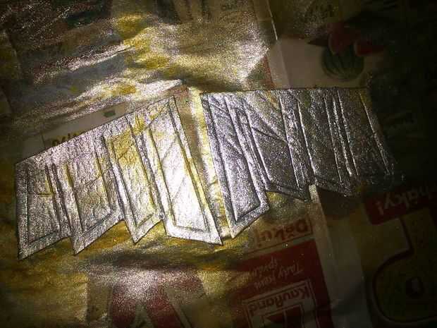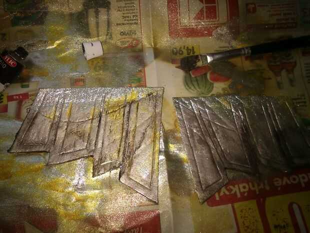 Ahora usted también puede agregar algunos barba falsa. Hacía de un cuero. Después de la pintura parece a un metal de hoja.