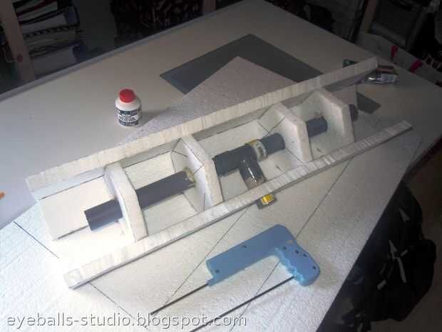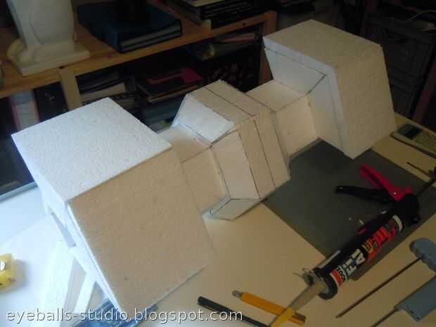Cortar la espuma de poliestireno se hace con un cortador de alambre caliente. Se trata de una herramienta perfecta para el corte de espuma de poliestireno sin hacer un gran desorden. Mina puede ser alimentado por baterías o alimentación externa. Tengo una fuente regulable de laboratorio, y esta es la solución perfecta para usar con un cortador de hotwire, porque te da un poco de control sobre la temperatura.