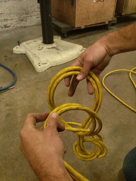 Como el 'nuevo' bucle a través del lazo 'existente', agarro uno nuevo con mi mano derecha, que lleva el peso de la cadena recién formada (como sigue, esto se convertirá en el extremo pesado).