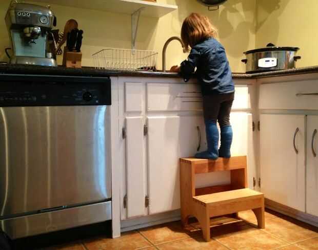 Construí este banquito para que mi hija podría llegar hasta el mostrador de la cocina y estar a mi lado mientras yo estaba cocinando. Quería una silla que era funcional y luz para que mi hija podría mover alrededor, pero también fuerte y hermoso. El diseño en que se asentaron fue un tradicional cola de Milano coctelera banquito hecho de aliso.