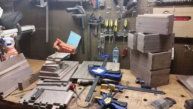 Necesitarás una buena configuración en el taller para sacar esto, pero como mínimo necesitarás una Hanon, un plantilla o router de cola de Milano, una sierra de cinta y algunas herramientas de mano. También hice un uso significativo de una lijadora de grueso y cepillo para limpiar todas las piezas resawed, aunque el plano de la mano o la lijadora puede ayudar hacia fuera en su lugar.