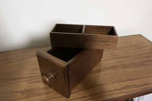 La caja es también un buen ejercicio en técnicas de carpintería. Como el espacio es una prima, el material debe ser fina pero todavía fuerte. Resawed todo de material grueso de 1-2" hasta 1/2", 1/4" o menos requerirá múltiples colas de Milano a través, mortajas, vueltas y otros cortes a mano de ponerlo todo junto.