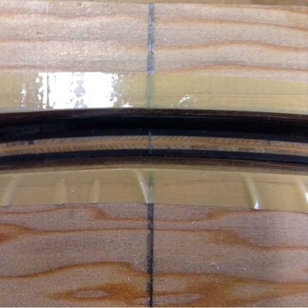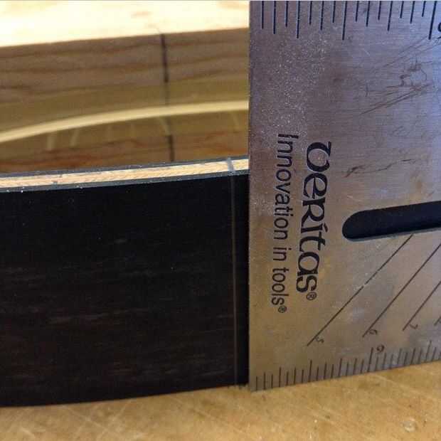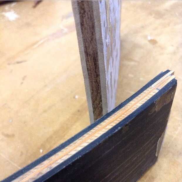 Después de que el pegamento se seca, utilizar una lijadora de banda para eliminar el apretón hacia fuera de los bordes, luego me marca la línea central de mi forma por la laminación. Extender esta línea de lleno el interior y el exterior.