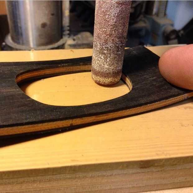 Puse una lijadora de tambor pequeño en el taladro y suba la mesa hasta que quede 1/16" alejándolo del tambor. Lije con cuidado el perímetro de la lente hasta que la lente puede ser presionada en la cavidad de apertura. Ahora debe haber un pequeño borde alrededor del parte exterior que atrapa a la lente.