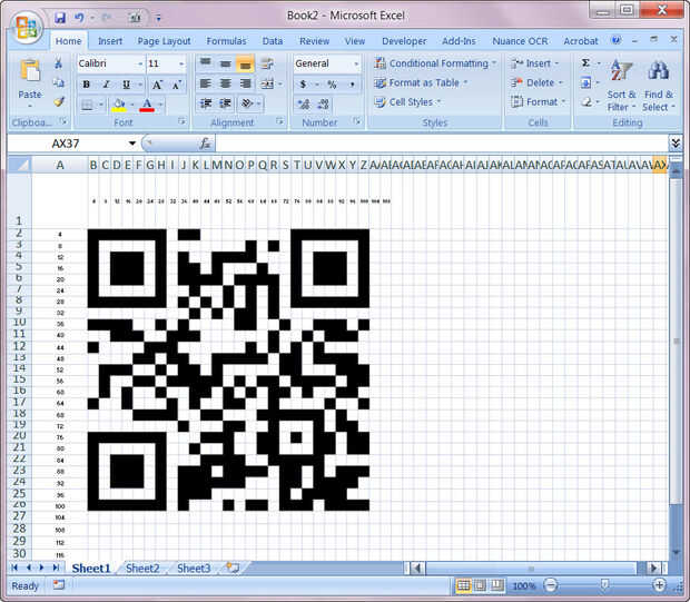 3 - cambiar el tamaño de código QR tan grande como usted lo necesita para ver las celdas de excel como marcadores de la puntada