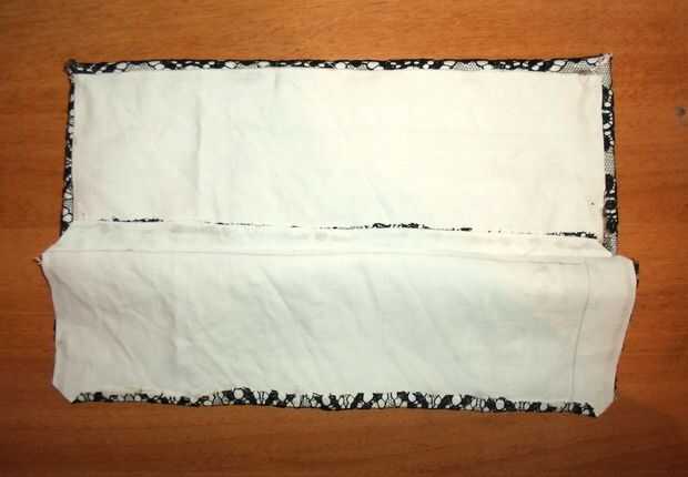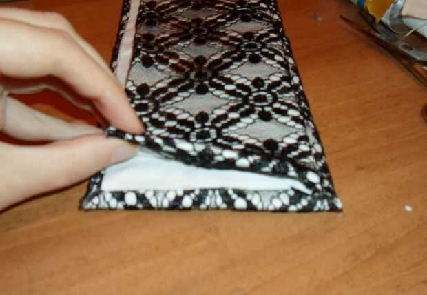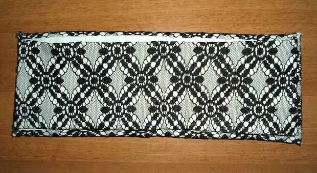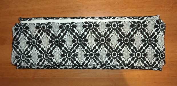 Doblar uno de los lados más largo (aproximadamente 1cm - 0,39 pulgadas) y pegar con pegamento caliente. Este será el lado de la abertura del bolsillo en la parte superior.