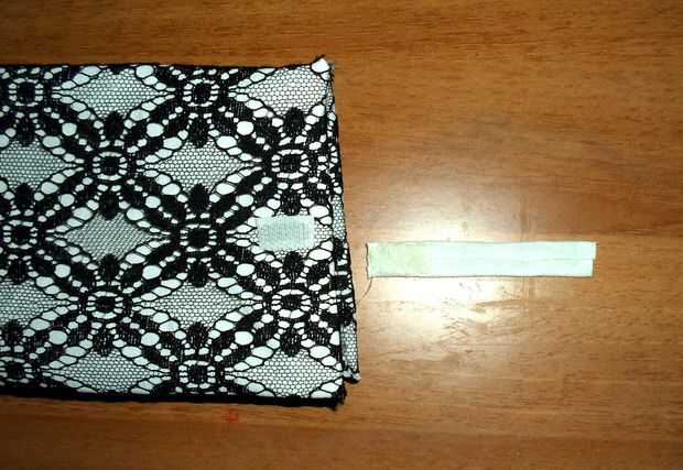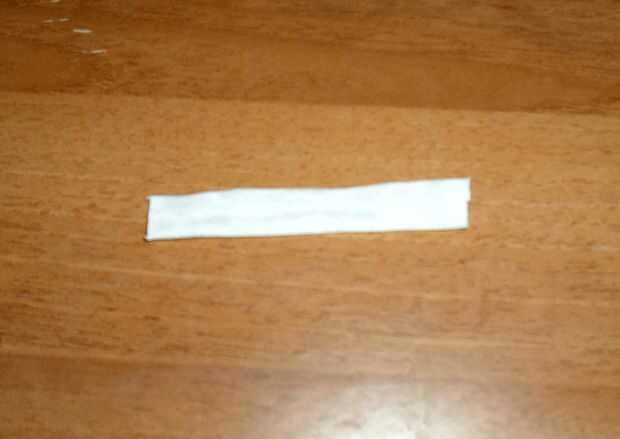 Cortar un pequeño rectángulo de tela, sobre 7x3cm (2,75 x 1.18 pulgadas) luego doblar y pegar los 2 lados más largos.