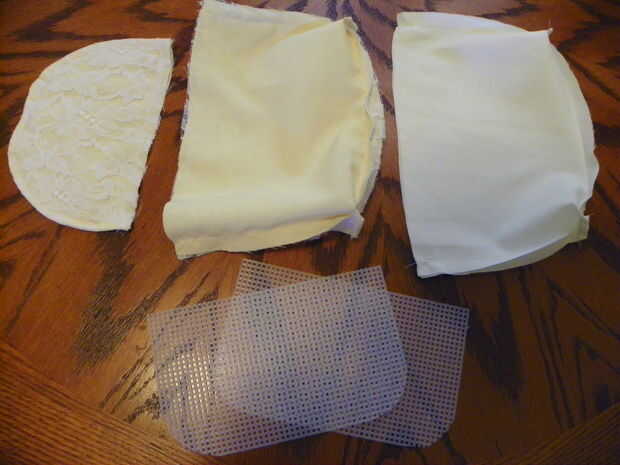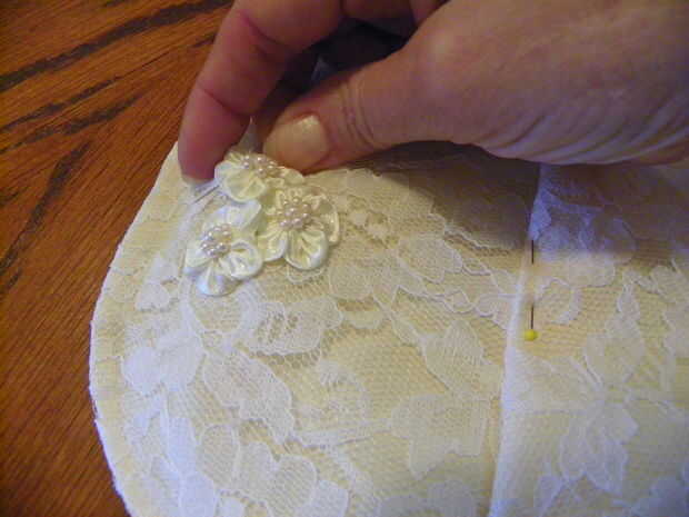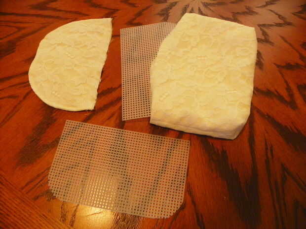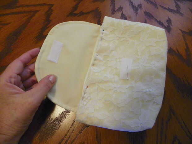 El vestido de Satén amarillo tenía una guarnición que usé para el sombrero y el embrague bajo el cordón. Me di cuenta de qué tamaño quería el embrague y cortar 2 rectángulos de la amarilla y cordón. Me cubrió el encaje sobre la tela amarilla y coser alrededor de los 4 lados. Luego cubrió estos 2 piezas derecho lados juntos y coser los costados y parte inferior. También cortar 2 piezas para el forro y lo cosió. Que cortar las piezas para la solapa y coser la puntilla en este también. Cosido a las esquinas de la caja pequeña en la parte inferior, colocada el forro dentro del bolso y antes de cubrió a cortar 2 piezas de lona plástica para poner entre el exterior y el revestimiento. (frente y reverso) Acople rápido para el cierre o velcro.