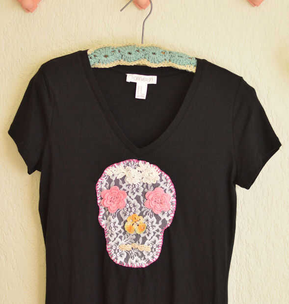 conseguido una camiseta que es demasiado grande y podría así ser una camisa de noche? Trocear en forma de guarnición túnica, mini vestido o top largo con encaje arriba a los lados. Nueva costura necesaria, solo tijeras y alfileres/imperdibles.He añad