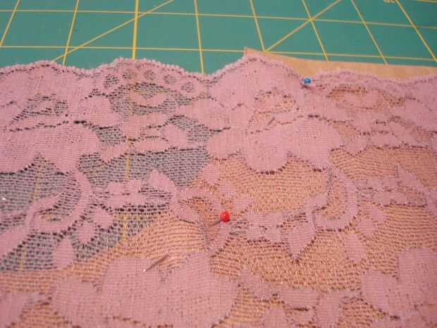 No corte a lo largo de los dos bordes laterales (ver foto), que desea preservar el borde natural de encaje en el adorno, que es el punto de compra de cordón grueso ajuste en lugar de tela de encaje. Corte sólo a lo largo de los bordes en la imagen.