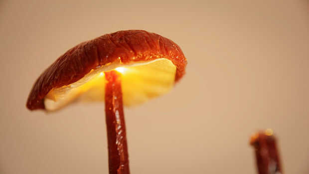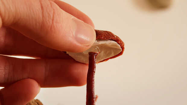 Otra forma de montar las cúpulas, que es mi favorito personal, es utilizar papel de tejido fino junto con gotas de silicona. Esto es ideal para domos de tamaño medio, y también parece grande cuando se ve desde debajo, imitando la parte inferior de una seta real.