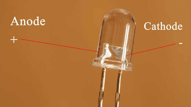 En primer lugar deberemos recortar las patas del LED usando un par de tijeras y soldar una resistencia a la pata positiva. La pata positiva es la que va a la placa más pequeña dentro de la LED y se llama ánodo. La placa más grande es el cátodoy es negativa.