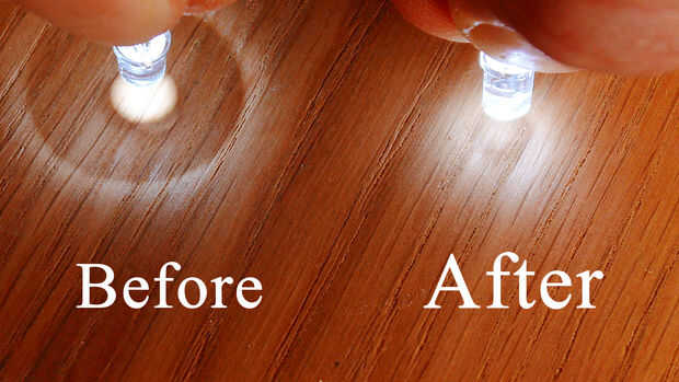 Una alternativa es usar LEDs de haz extensivo, que ya tienen cabeza plana o incluso superficial Monte LEDs (como en la última foto). Estos últimos requieren un poco más habilidades de soldadura y los LEDs pueden ser un poco difíciles de encontrar, pero que dan un resultado superior, por lo que recomiendo si tienes ganas de.