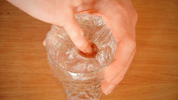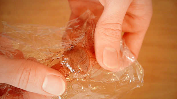 Para ayudar a conseguir la forma abovedada, colocar boca abajo en un recipiente y presionar hacia abajo un poco. Alternativamente, puede intentar envolver en parte alrededor de una pequeña bola hinchable.