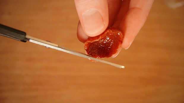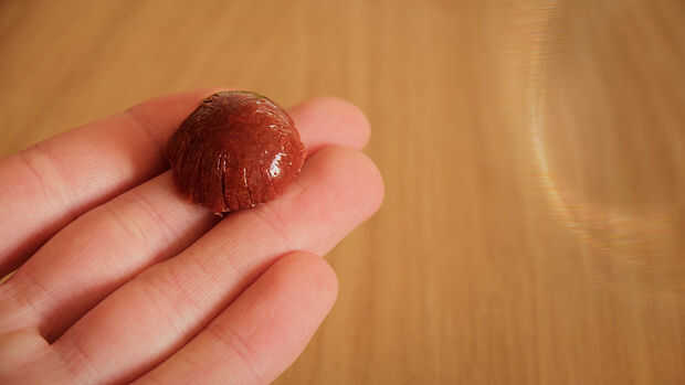 Una vez que crees que estás hecho, sostenga la luz para ver cómo la luz se transmite a través de él. Como se aprecia en el cuadro quinto, mina con un parche brillante curvado en el centro. Si hay algo similar en el suyo, simplemente moldearlo más con los dedos hasta que estés contento con cómo se ve. Sobre todo, no hacer la cúpula demasiado gruesa o bien la luz de lo LED no podrá brillar a través de él.