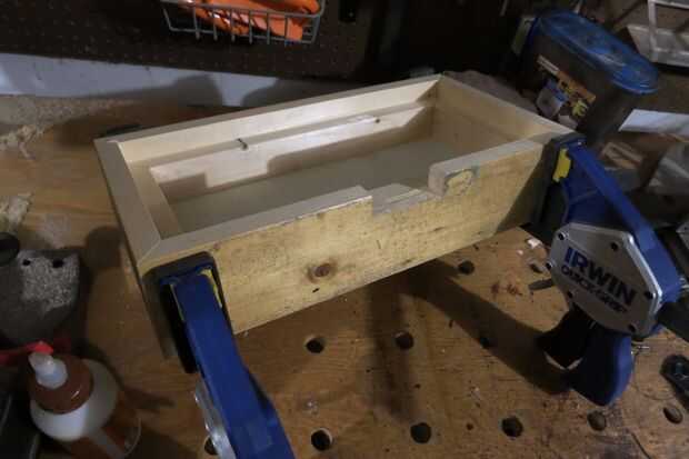 Seco para montar todas las piezas y cortar la madera contrachapada para encajar en la ranura.