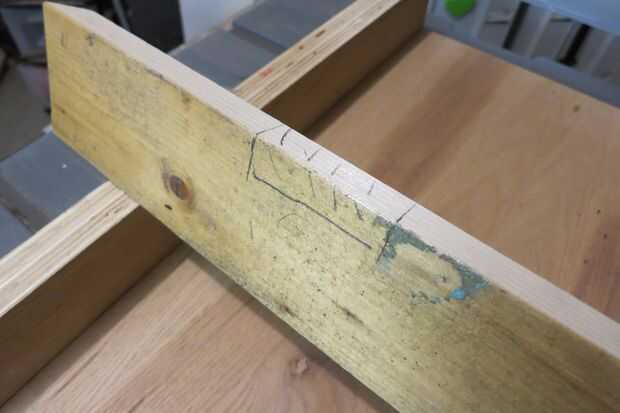 A continuación, plan de las muescas en el interior. Necesitarás 3. Uno será el hueco de la tapa. El segundo capta el fondo de madera contrachapada y el último será una compensación para hacer las patas aparecen menos grueso. Recorte el exceso hasta conseguir el aspecto que desea.