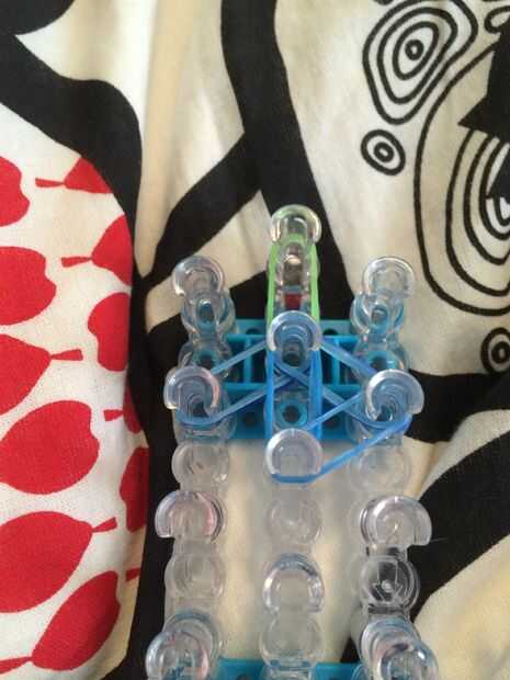 necesita: bandas de un telar del arco iris, un gancho y blanco y negro.Paso 1: Colocación de las bandas Lugar sus bandas en un principio como el triple solo paren en la clavija 4 y mover la banda hacia la derecha y luego haces una línea recta en el c