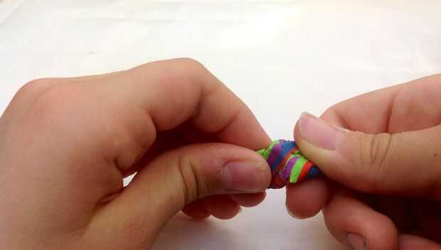 Iniciar la arcilla de rasgado en pedazos y luego formando juntos una bola lisa