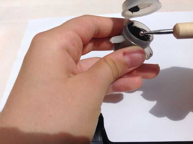 Coloque la herramienta balling en la pintura negra y ojos