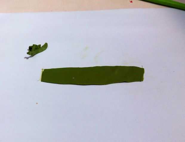 Estirar una arcilla de diferentes colores en una tira larga