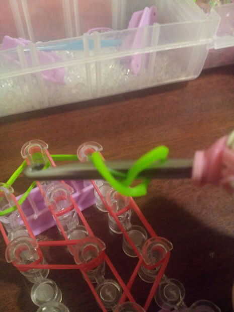 Espina de pescado es una de las mejores bandas de telar!Paso 1: Lo necesitarás: ♡Hook♡Bands♡2 lápices/telarPaso 2: Cómo empezar! ♡Take cualquier banda y hacer un ocho! Asegúrese de introducirlo correctamente en los lápices de las clavijas.Paso 3: Col