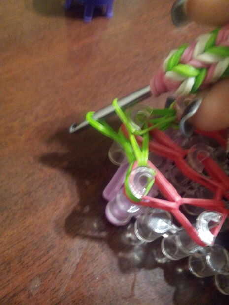 2 de la tercera clavija media ir detrás de la pinza de banda tapa su primer sistema de doble bandas y lazo a sí mismo grab peg el resto de bandas y lazo a sí mismo mantener bucle hasta el final en este punto debe parecerse a mi tercera foto