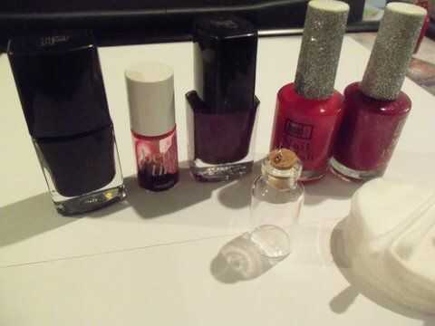 • Esmalte de uñas, tintes de labios, pinturas Acylic o lo que tengas que va crear un efecto realista "sangre". Utilicé una mezcla de esmalte de uñas y un tinte de labios.