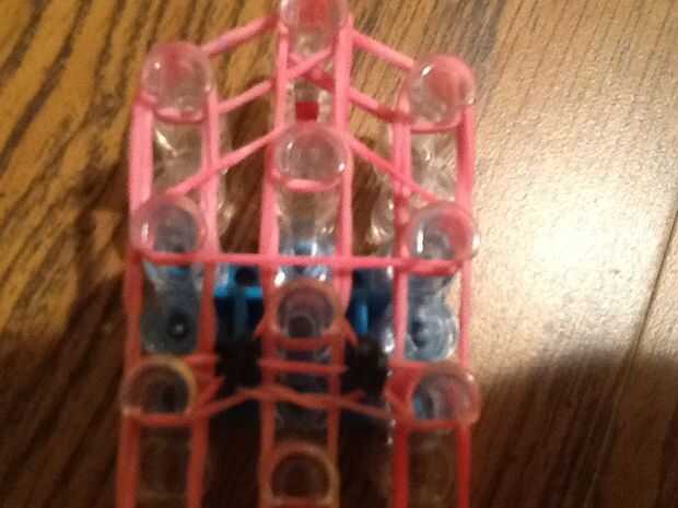 este amuleto es bastante fácil de hacer. Usted necesitará hacer dos de estas si quieres hacer un encanto de cereza doble como se muestra en la imagen.Se necesita:-bandas rojas 11-1 banda verdePaso 1: Agregar las bandas. Tienen el telar con las flecha