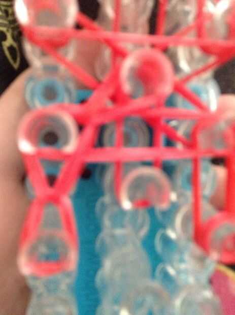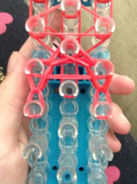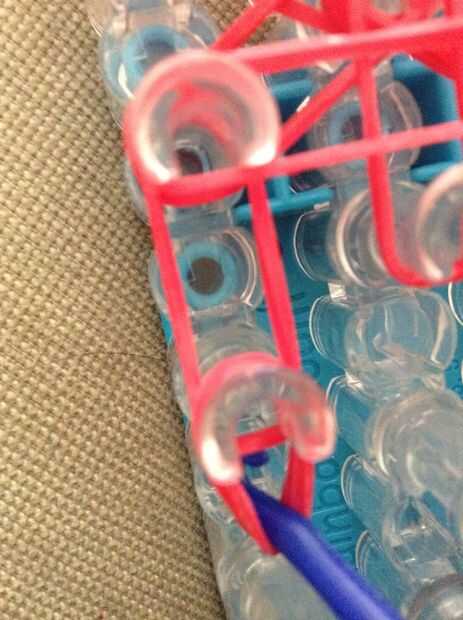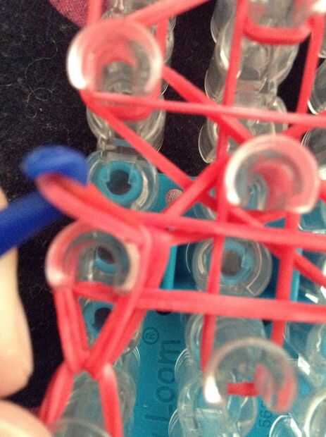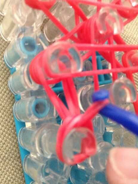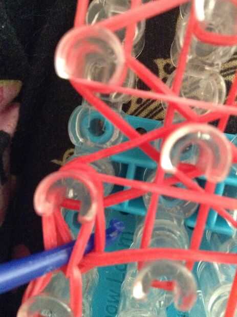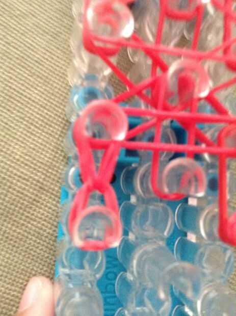 necesita: bandas de un telar del arco iris, un gancho y blanco y negro.Paso 1: Colocación de las bandas Lugar sus bandas en un principio como el triple solo paren en la clavija 4 y mover la banda hacia la derecha y luego haces una línea recta en el c
