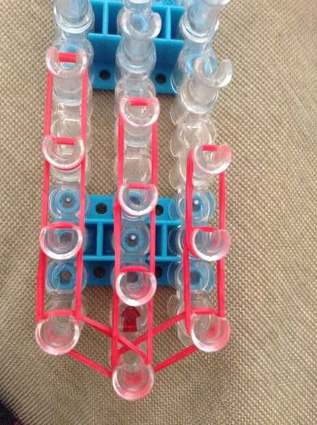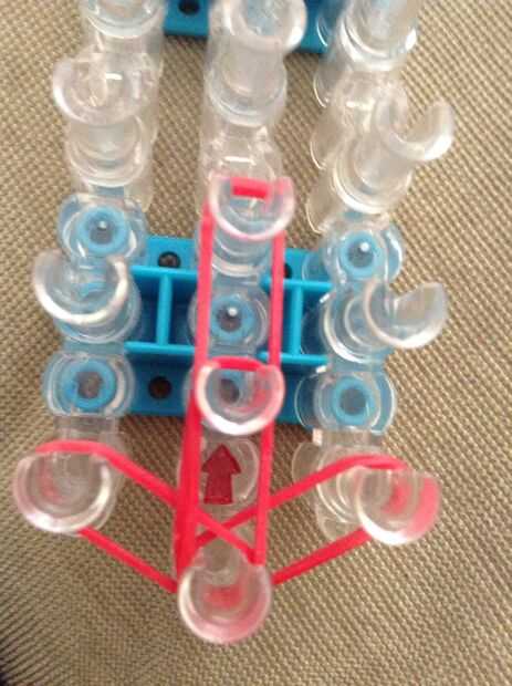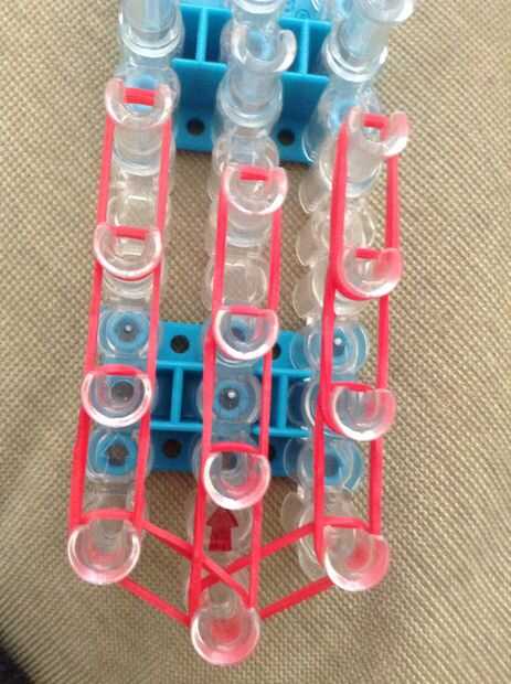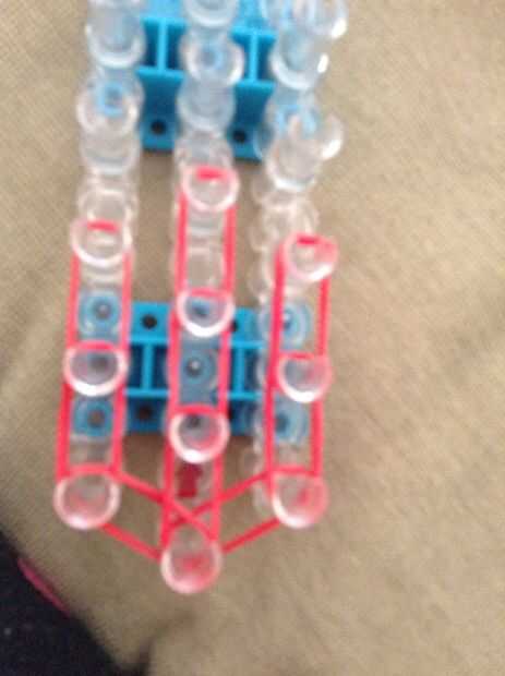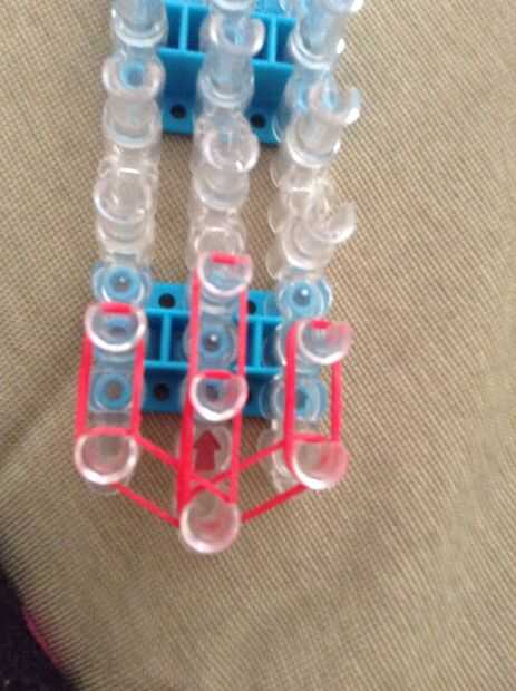 necesita: bandas de un telar del arco iris, un gancho y blanco y negro.Paso 1: Colocación de las bandas Lugar sus bandas en un principio como el triple solo paren en la clavija 4 y mover la banda hacia la derecha y luego haces una línea recta en el c