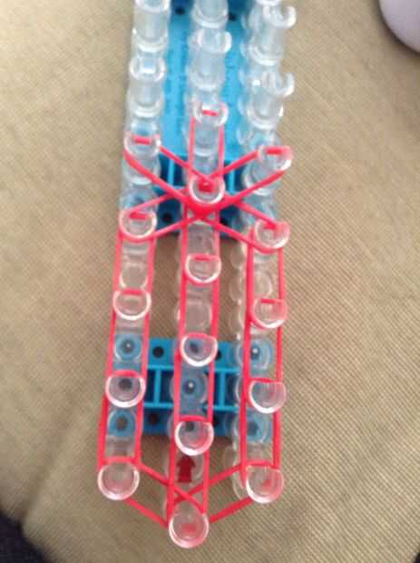 necesita: bandas de un telar del arco iris, un gancho y blanco y negro.Paso 1: Colocación de las bandas Lugar sus bandas en un principio como el triple solo paren en la clavija 4 y mover la banda hacia la derecha y luego haces una línea recta en el c