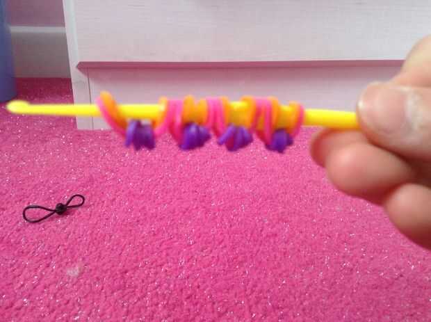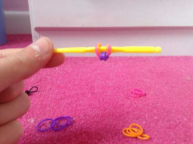 Paso 1: Organizar su telar para que la flecha apunte hacia usted y se ve así.Paso 2: Salir de 8 gomasPaso 3: Goma solo poner 1 en la primera clavijaPaso 4: Poner 2 gomas en la clavija inferior asegurándose que el extremo es superposición de las banda