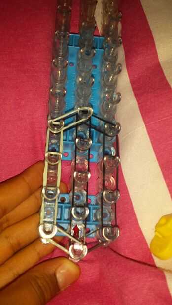 espero que todos disfruten mi primer instructables! Por favor dejar comentarios, preguntar y sugerir!Paso 1: fuentes de Usted necesita lo siguiente:· Telar del arco iris· Gancho· Bandas de gomaPaso 2: Colocar las gomas Empezar desde la parte inferior