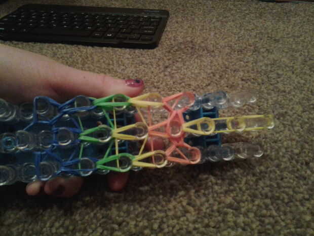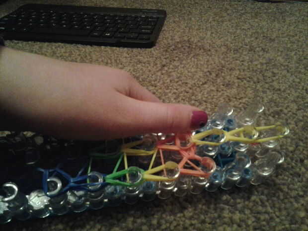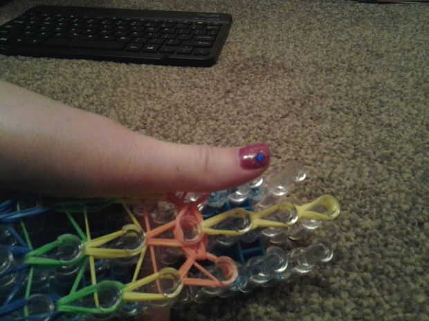 espero que todos disfruten mi primer instructables! Por favor dejar comentarios, preguntar y sugerir!Paso 1: fuentes de Usted necesita lo siguiente:· Telar del arco iris· Gancho· Bandas de gomaPaso 2: Colocar las gomas Empezar desde la parte inferior